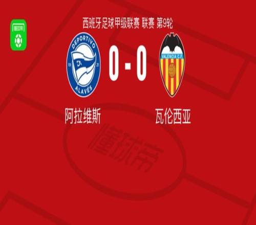 北京时间10月21日西班牙足球甲级联赛 联赛 第9轮,阿拉维斯主场对阵瓦伦西亚。最终比分阿拉维斯 0-0 瓦伦西亚