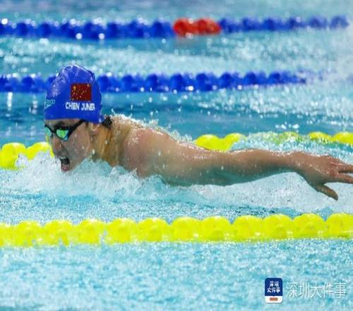 2025年11月13日,第十五届全运会游泳比赛男子200米蝶泳决赛,深圳本土选手陈俊儿在比赛中,最终,他以1分56秒83的成绩获得铜牌。