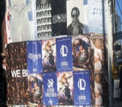 纽约市LOL宣传广告与歌手斯泰尔斯争夺版面歌手粉丝撕下LOL海报